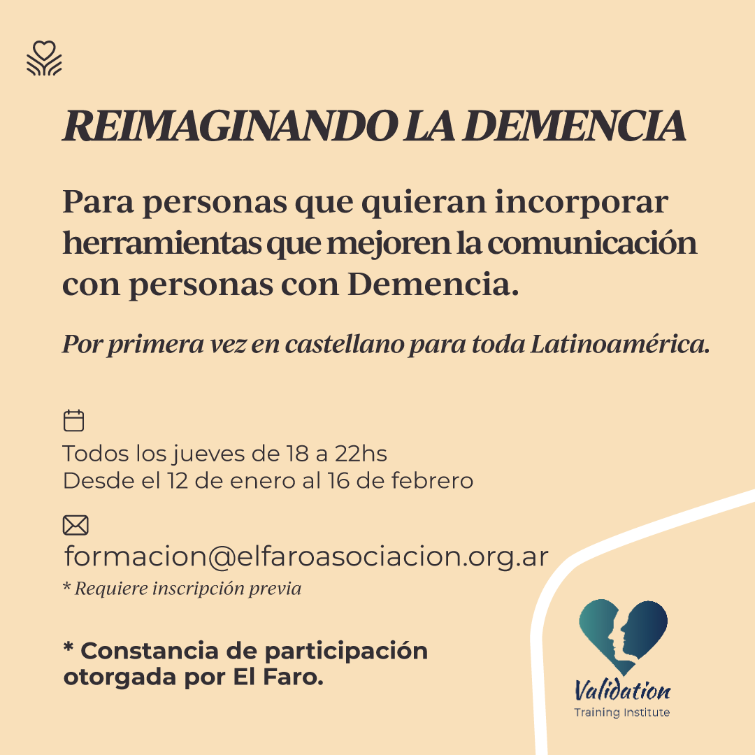 están abiertas las inscripciones para comenzar el entrenamiento práctico en Validación para poder REIMAGINAR la demencia. Si eres cuidador o una institución que se especializa en personas con Alzheimer, puede ser de gran aporte la incorporación de nuevas herramientas de comunicación.